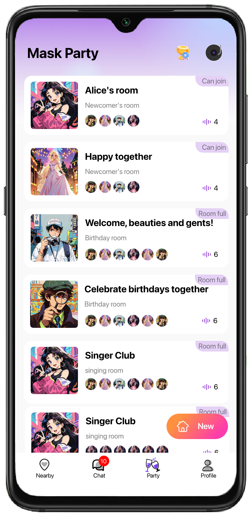 Join lively parties, chat freely, and enjoy real-time interactions — meaningful connections are always just a moment away.